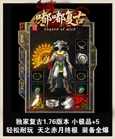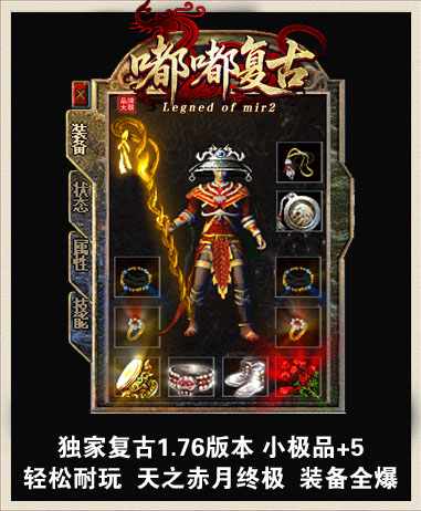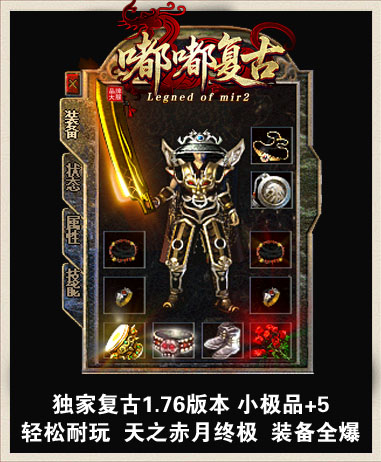 - 本服介绍:“1.76嘟嘟复古”本服为小极品+5,一切靠打 祖玛 赤月 天之赤月 boss爆一切